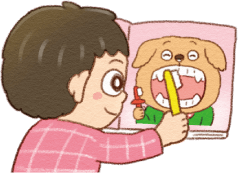 ティッシュや付属の「はぶらしカード」を使って、歯みがき遊び!動物たちの歯についた色をふき取りましょう。