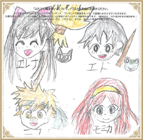 12歳の魔法使い。エレナとはふたごで、弟。ホウキに乗るのが苦手。